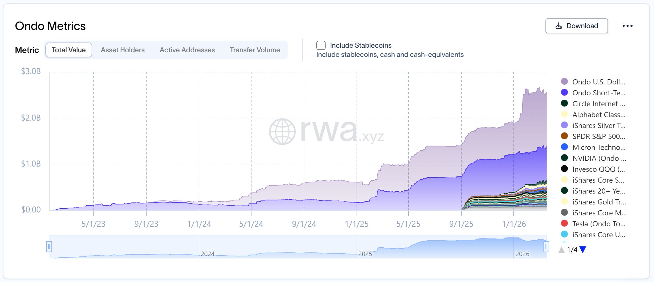 与此同时,另一重推力则来源于 Ondo 在代币化股票市场不容忽视的领导地位。