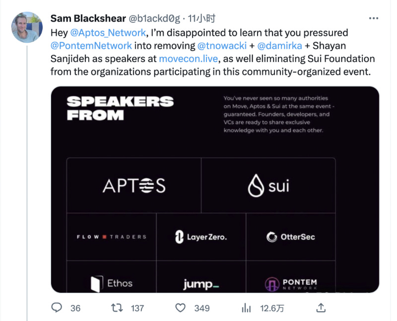 2 月底,新公链中的孪生双子星 Sui 和 Aptos 打起了口水仗。Sui 的 CTO 在社媒上直指 Aptos 打压 Sui 及其生态中的开发者,限制他们参加相关会议活动。唇枪舌剑的背后,其实也反映出新公链都渴求差异化和有竞争力的优势来俘获用户和关注度。