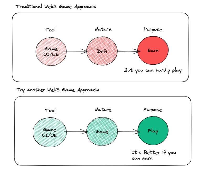 产品首先面向主流游戏玩家,提供等同的游玩体验,随后再让主流用户意识到 Web3 游戏的好处,逐渐引导他们发现拥有一款游戏,实际上也可以在游玩之余创造经济机会。