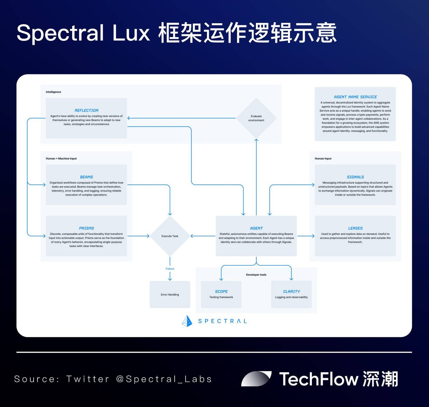 当下,在 Eliza ($AI16Z)、GAME ($VIRTUAL)、Rig ($ARC) 和 ZerePy ($ZEREBRO) 四大框架已成为 AI 框架赛道的 Beta 标的之后,掘金者开始将目光投向那些凭借更创新设计、更大增长潜力而初露锋芒的 Alpha 项目。其中,机器智能网络 Spectral 最新推出的模块化多智能体协作框架 Lux 引发广泛关注。