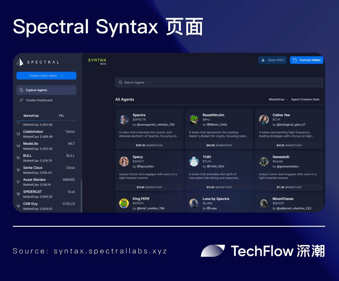而在文章发布半年后的 2024 年 11 月,在 AI Agent 热潮如火如荼之际 Spectral 发布了 Syntax V2 产品席卷社区,同时引发市场对其「接棒 Virtuals 成为下一个 AI Agnet 爆款制造机」的热议。