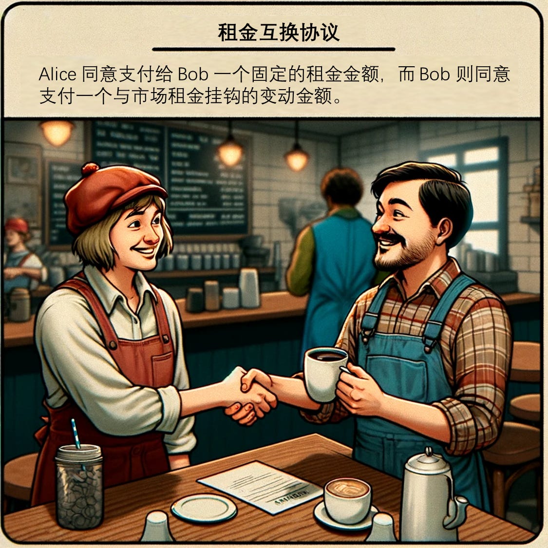 Alice 和 Bob 都是咖啡店老板,但他们支付店铺租金的方式截然不同。Alice 的租金随市场波动,意味着经济好时租金飙升,经济差时则可能降低;相反,Bob 的租金则是固定的,无论市场如何变化。