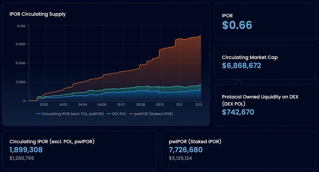 而IPOR代币的市场表现已经回应了其价值。2023年的主要里程碑显示,$IPOR代币在流动性增加6.5倍且交易量超过40亿美元,代币年末价格较年初上涨了10%。