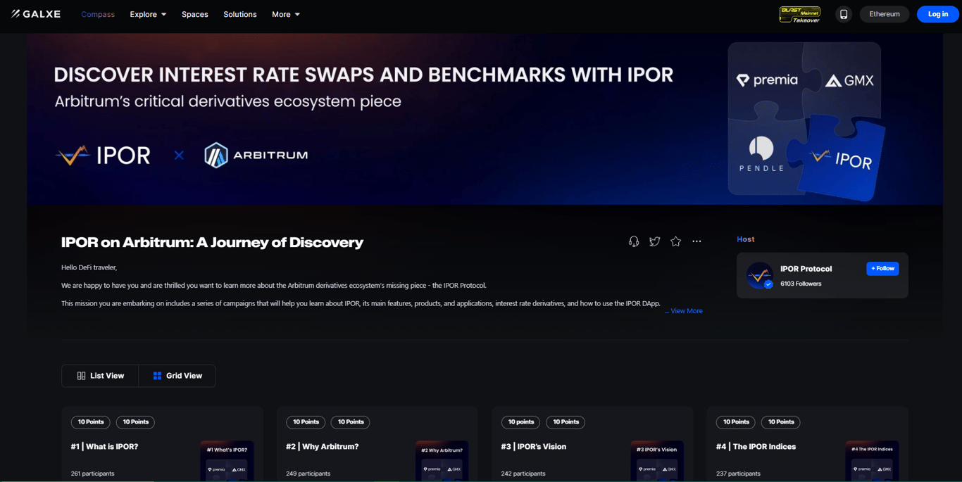 最后,如果希望更进一步了解IPOR的利率互换,还可以点击此处参与官方在Galxe上举办的活动(22日截至)。