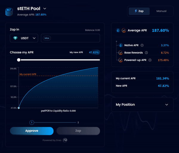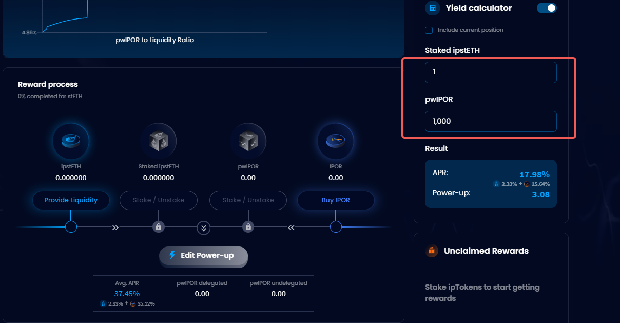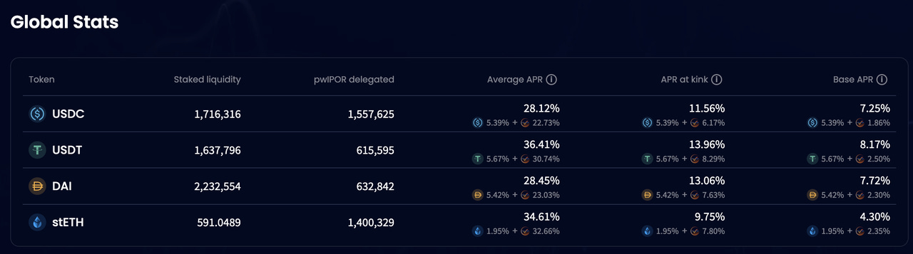 要增加提供流动性的收益,除了提供更多的加密资产外,用户还可以质押项目原生代币$IPOR获得pwIPOR,用于收益加速。