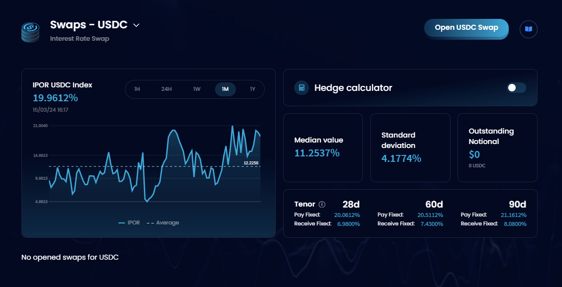 而IPOR,正是当前加密市场中,唯一的利率互换协议,将传统金融中极为重要的市场机制引入DeFi;它提供了IPOR指数和相关利率衍生品,为DeFi中固定收益市场参与者提供了稳定性,使他们能够有效应对利率变化的风险。