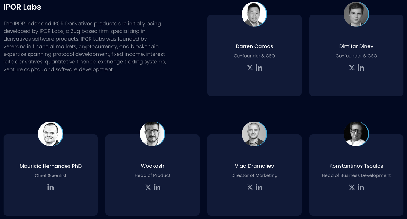 项目团队由资深的加密货币原住民、企业级开发人员以及拥有深厚量化分析背景的多位博士组成。这样一个公开透明且富有经验的团队是IPOR能够在竞争激烈的DeFi市场中脱颖而出的关键。