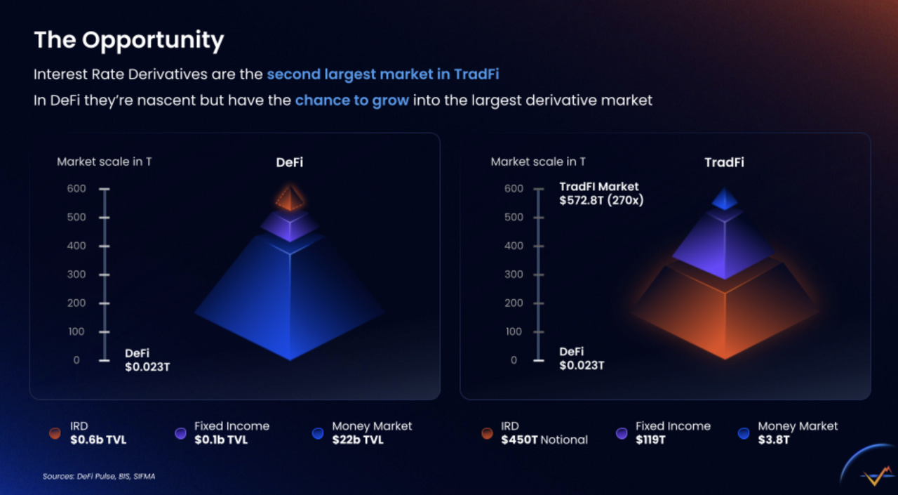 一个易忽略的热知识是,利率互换市场是全球第二大金融衍生品市场,运作相当成熟;而在DeFi中,这个市场仍是一片蓝海。