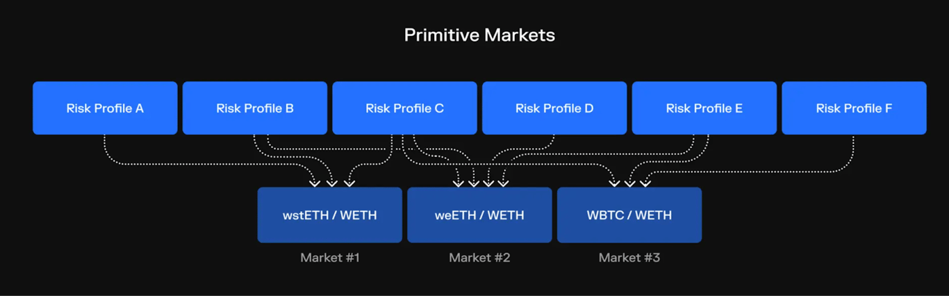 用户可根据自己的风险偏好,将对应贷款资产存入金库以赚取收益,而金库将流动性汇总到 Morpho Markets,以聚合流动性,更好的实现「借方」与「贷方」的需求撮合。