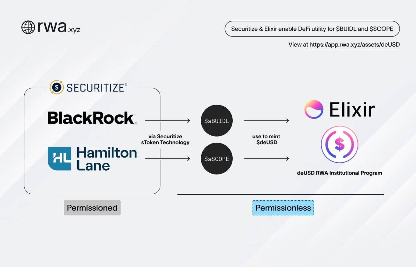 当然,入局这次 deUSD RWA 机构计划的不止贝莱德一家资管巨头,整个框架还支持 Hamilton Lane 的 SCOPE 基金等其他资产。大机构们已经积极探出橄榄枝,那么如何在保障资产安全的前提下充分实现链上流动性就是本次合作的重中之重,Elixir 与 Securitize 通过创新的技术架构巧妙应对这些合作重点。