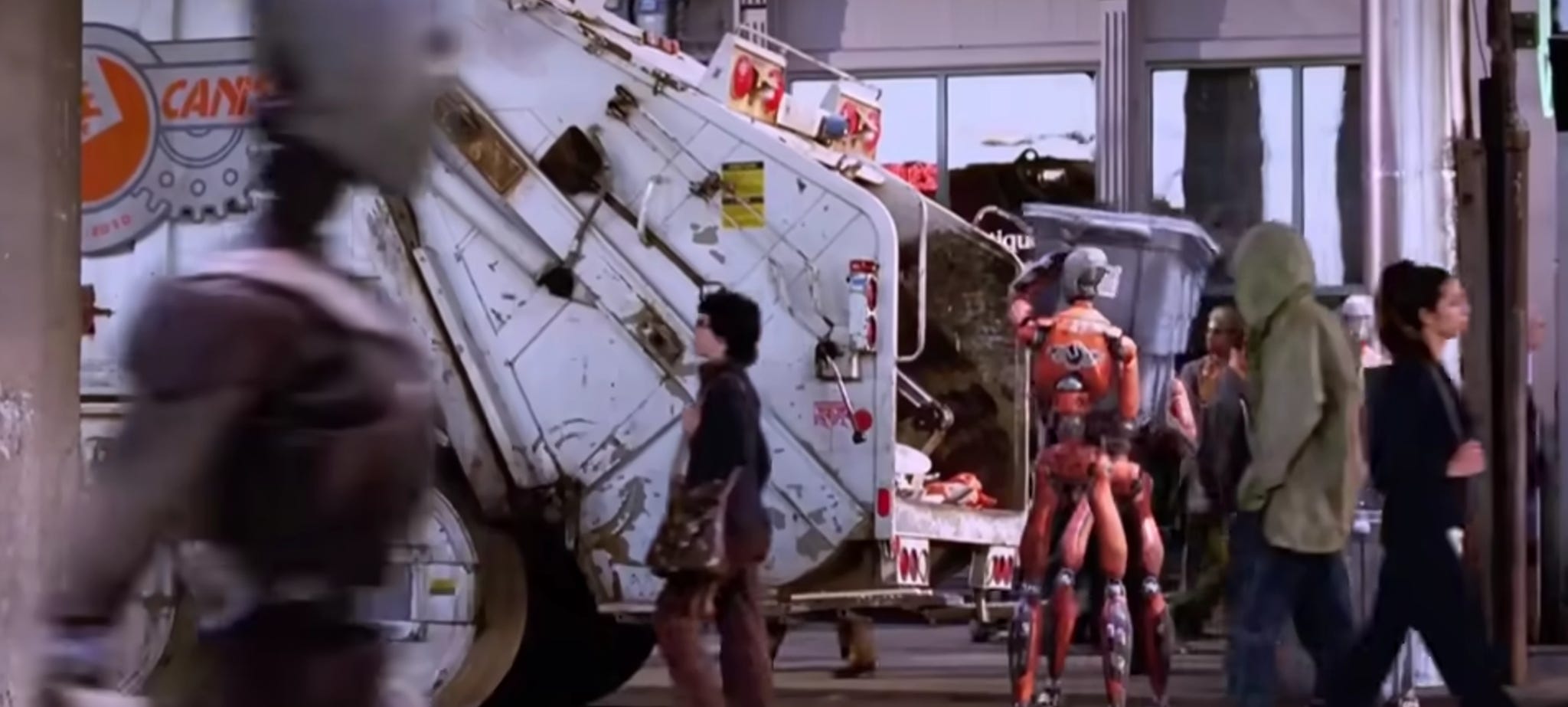 在电影所畅想的 2035 年,机器人制造商 USR 公司推出的服务型机器人 NS-5 全面融入人们日常生活,往芝加哥街头一站,满大街的 NS-5 行色匆匆,送快递、遛狗、打扫卫生、搬重物…根据设定,每 5 个人就拥有 1 个机器人。