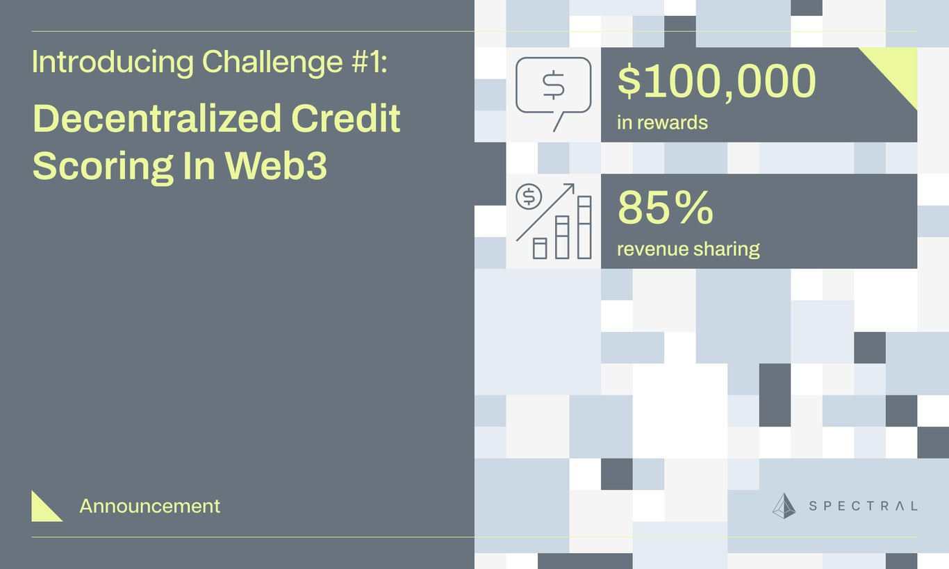 本次挑战中,Spectral 要求开发一个全新的信用评分模型(通过 Spectral Syntax,开发将变得很简单),获胜者可共同瓜分 10 万美元奖金,并且模型在链上被实时使用所收集的收入中有超过 85% 的份额将由开发者获得。