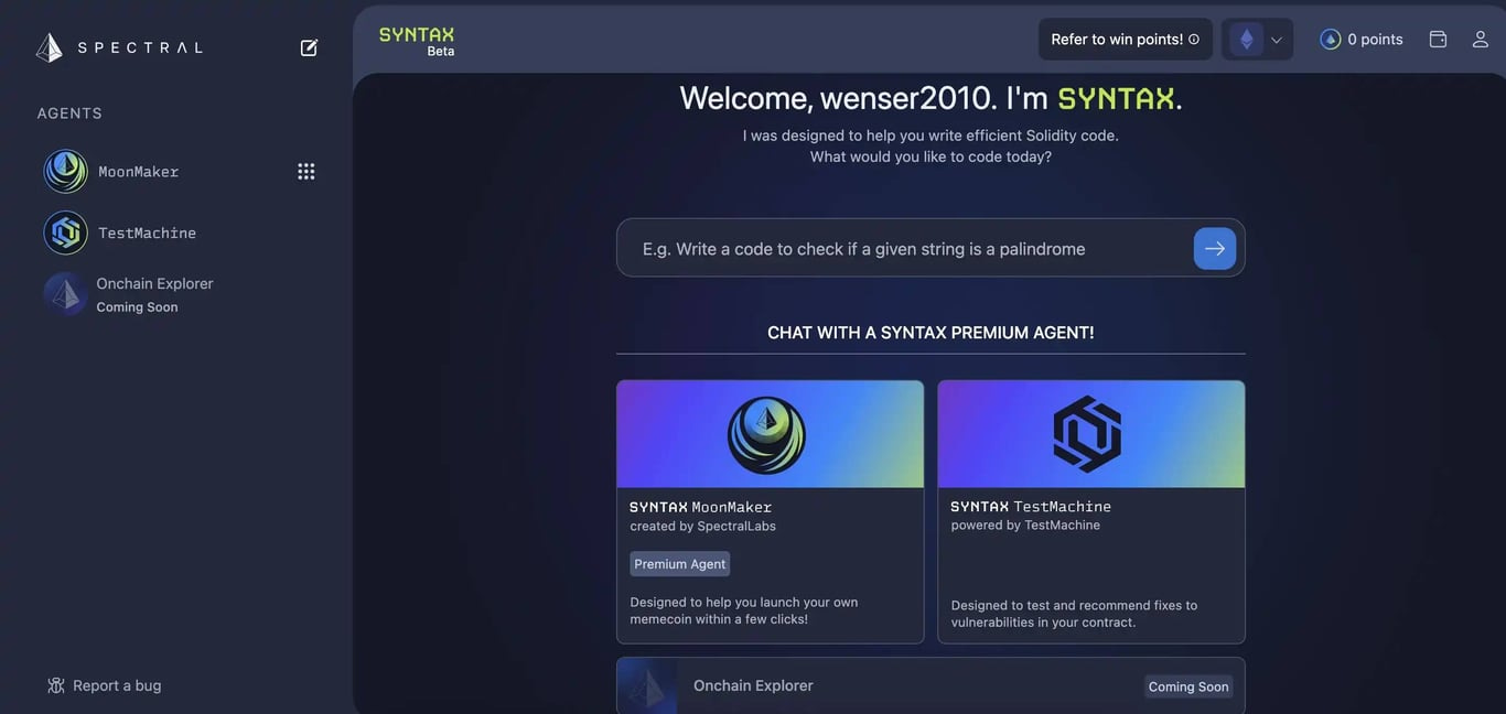 作为 2024 重要里程碑成就,Spectral Labs 今年三月份推出了人工智能应用程序 Syntax,帮助用户创建他们自己的链上 AI 代理。